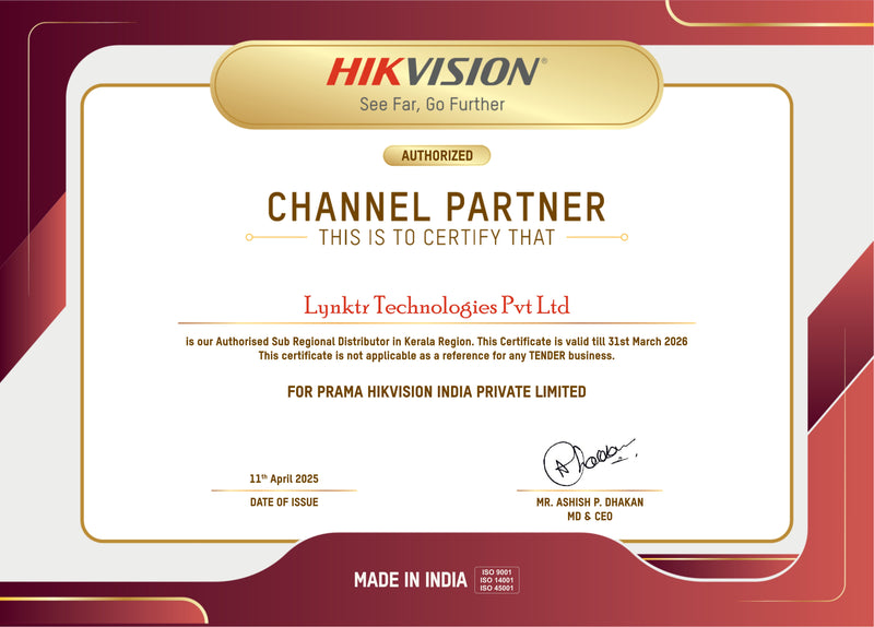 - Certified reseller of Hikvision